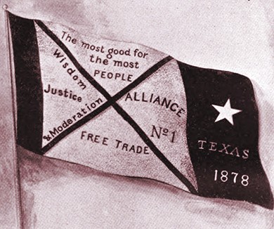 The Farmers’ Alliance flag displays the motto: “The most good for the most PEOPLE,” clearly a sentiment they hoped that others would believe. The picture source is : US History II (OS Collection)
